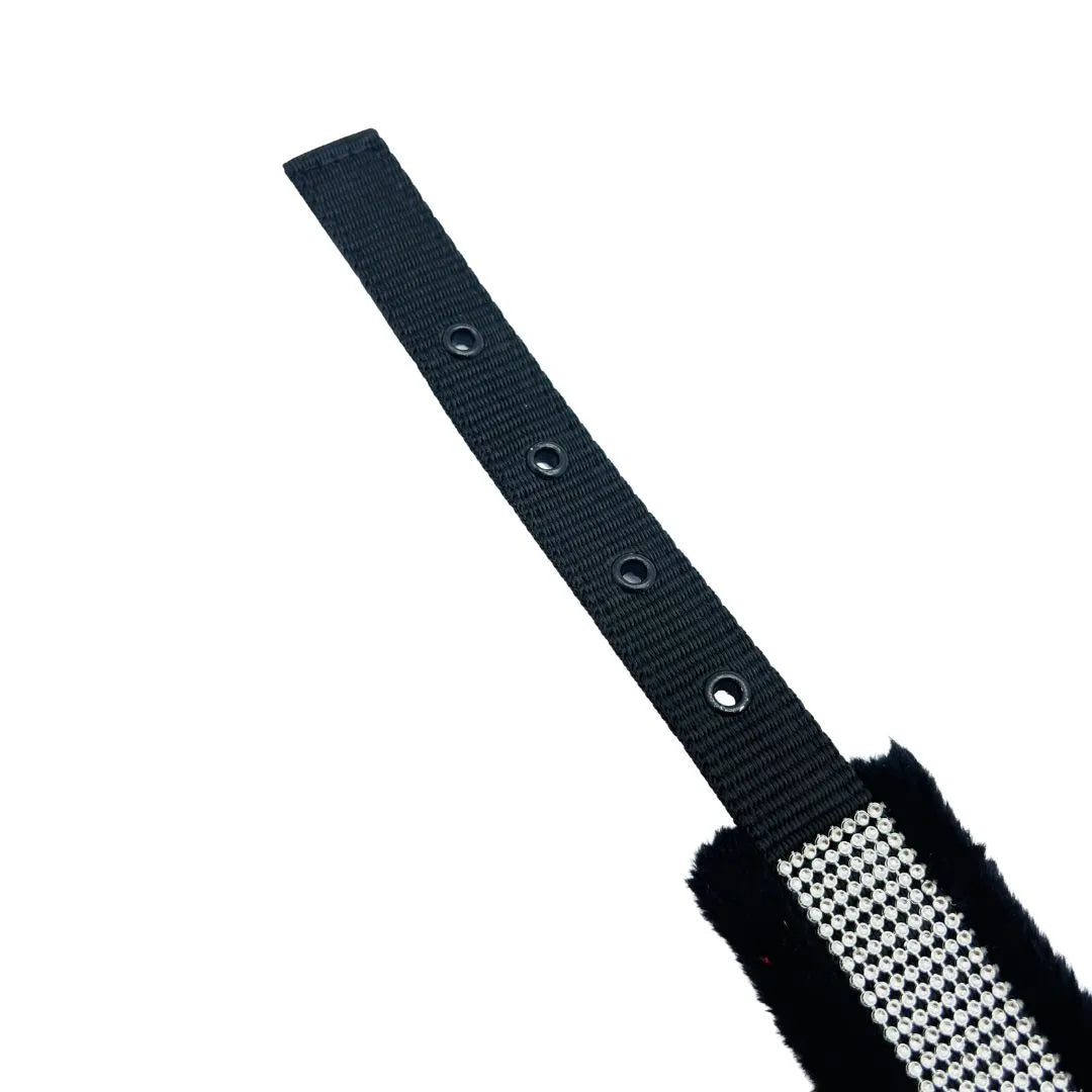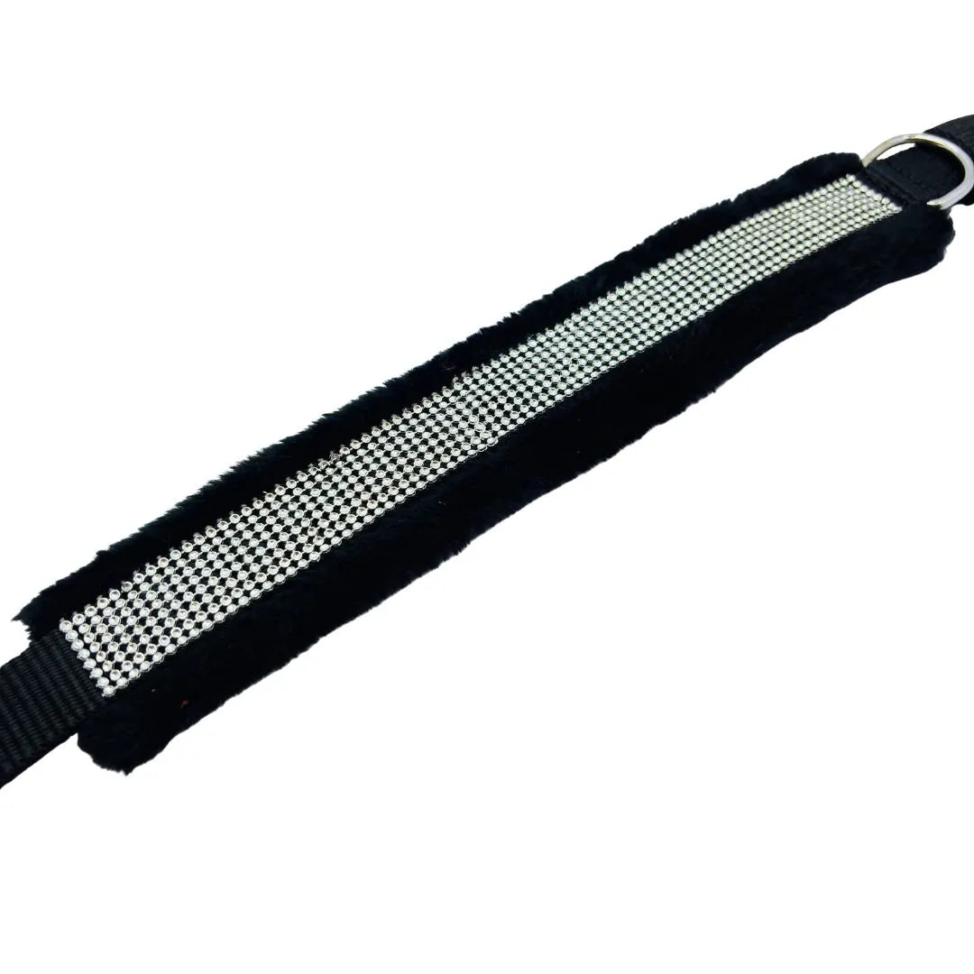 Material: Nylon Webbing, Faux Fur, Plastic/Metal Rhinestones, Metal Buckle and D-Ring.