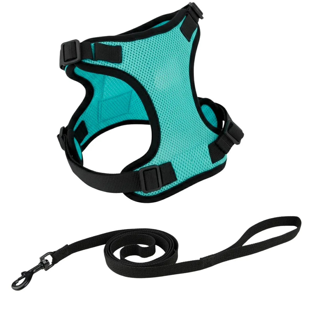 Color: Teal Green harness + black straps + black leash