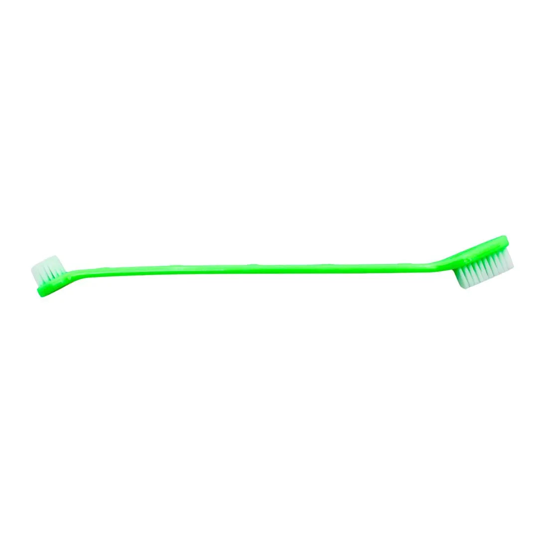 The small brush head is perfect for puppies, cats, and small-to-medium-sized dogs, allowing access to the hard-to-reach areas and the delicate gumline. The large brush head is ideal for medium-to-large breed dogs, covering more surface area for quick and efficient brushing of larger teeth. Both ends feature soft, high-quality nylon bristles designed to gently yet effectively remove plaque and tartar, promoting healthy teeth and gums. This dual-ended design makes it a practical, single-tool solution for multi-pet households.