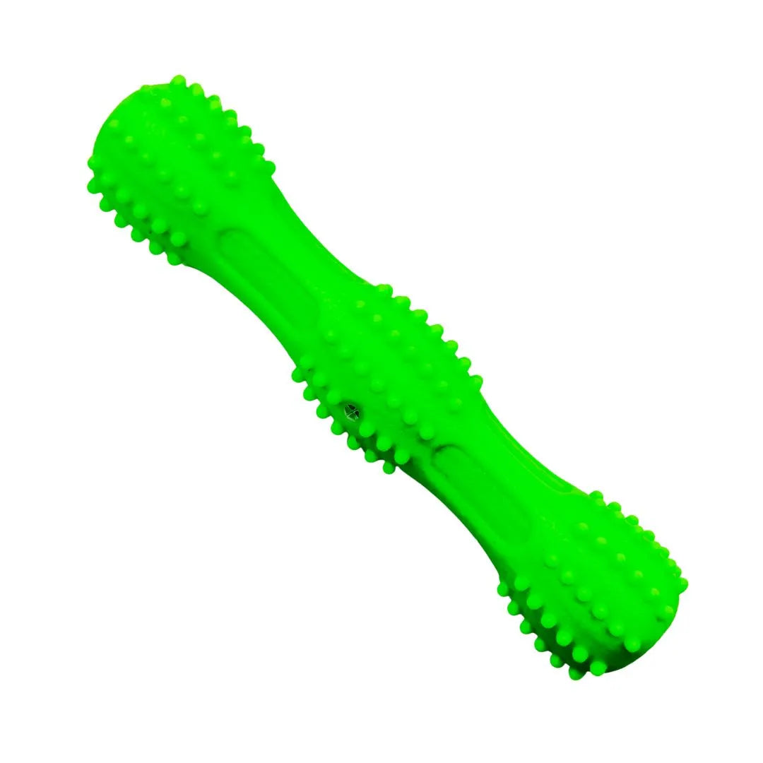 The Squeaky Dumbbell Dog Toy is a fantastic choice for games of fetch, active play, and satisfying your dog's urge to chew. Shaped like a classic dumbbell, this engaging toy is made from durable, thick, non-toxic rubber or vinyl in a vibrant Green color. This robust construction is built to last during rough play.