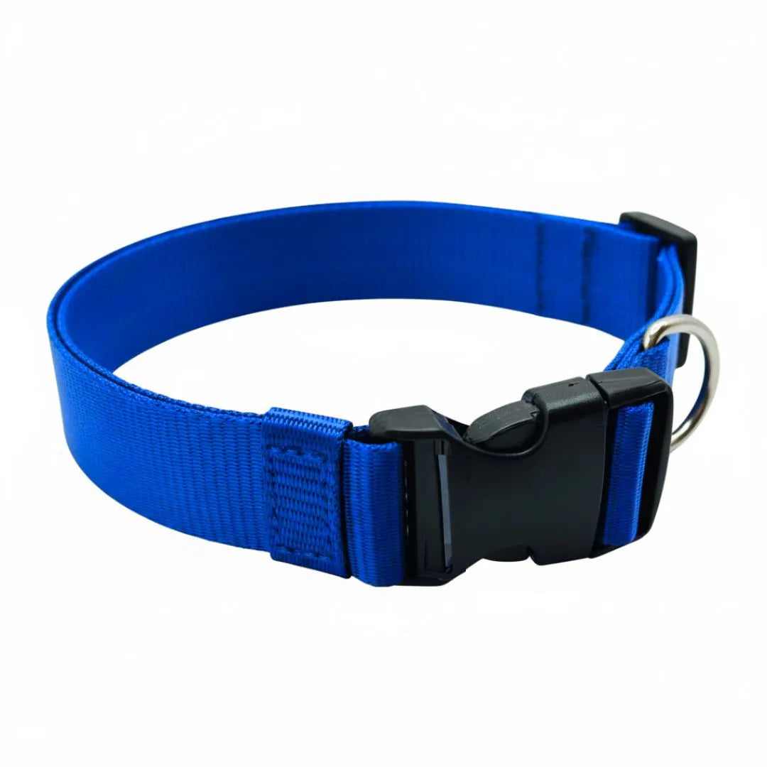 Ensure your dog’s safety during daily walks and playtime with this Heavy-Duty Blue Nylon Dog Collar. Built from high-density durable nylon webbing, this collar offers exceptional strength and long-lasting performance—perfect for active and strong puller dogs.