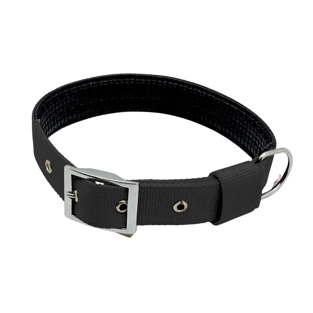 Prioritize your dog's safety and comfort with the Heavy-Duty Padded Nylon Dog Collar. This durable, rugged collar is built for reliable performance and superior comfort, making it ideal for active dogs, training, or long outdoor adventures. The exterior is crafted from robust, high-visibility nylon webbing in a striking black color, ensuring your dog is easily seen during walks, hunting trips, or in low-light conditions.