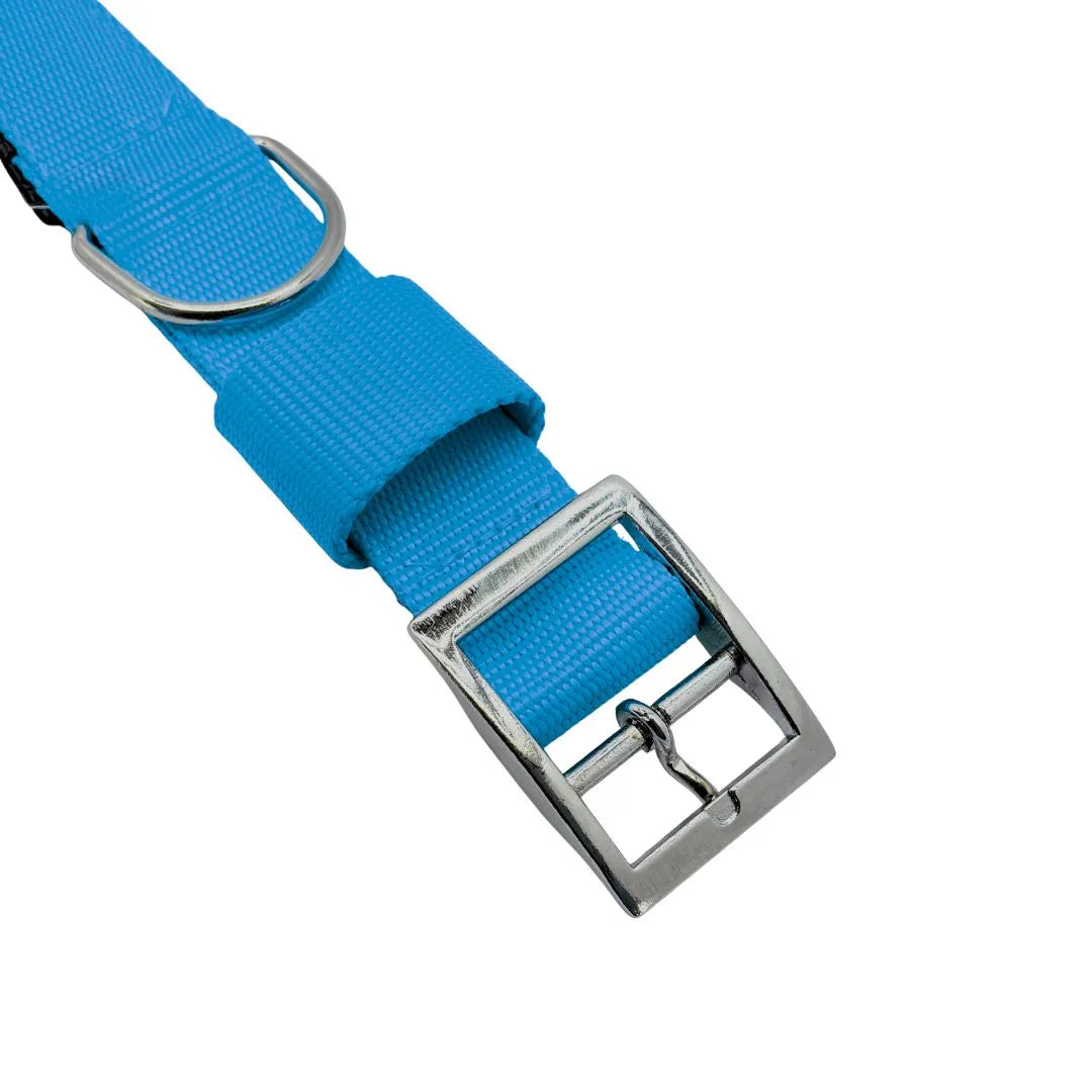 Prioritize your dog's safety and comfort with the Heavy-Duty Padded Nylon Dog Collar. This durable, rugged collar is built for reliable performance and superior comfort, making it ideal for active dogs, training, or long outdoor adventures. The exterior is crafted from robust, high-visibility nylon webbing in a striking blue color, ensuring your dog is easily seen during walks, hunting trips, or in low-light conditions.