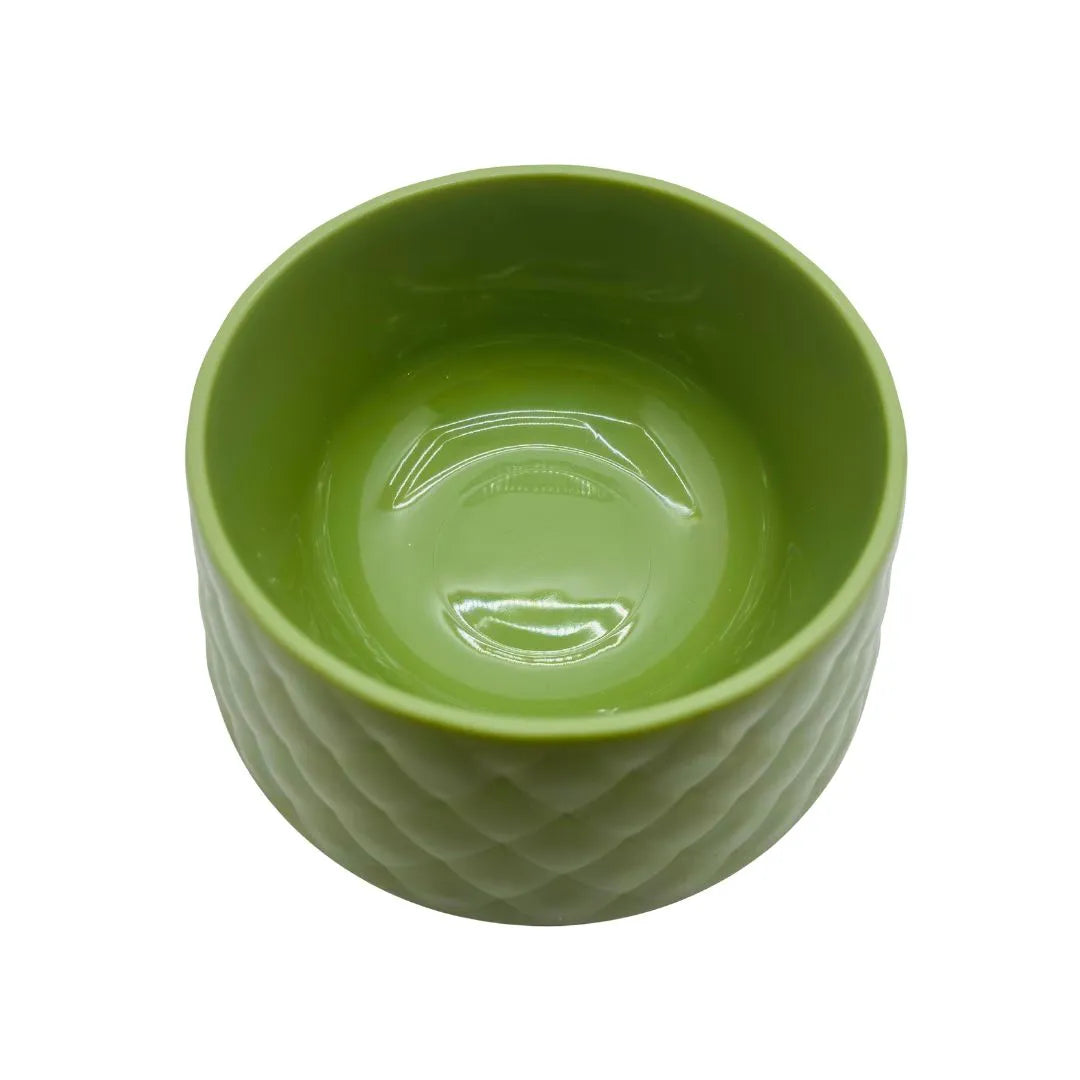 Add a touch of modern design to your pet's mealtime with this stylish Quilted Texture Green Plastic Pet Feeding Bowl. This attractive bowl features a contemporary, tactile quilted diamond pattern molded around the exterior, giving it a sophisticated look unlike typical smooth plastic bowls. The bowl comes in a calming sage green color, making it a subtle yet chic accessory for any modern kitchen or living space.
