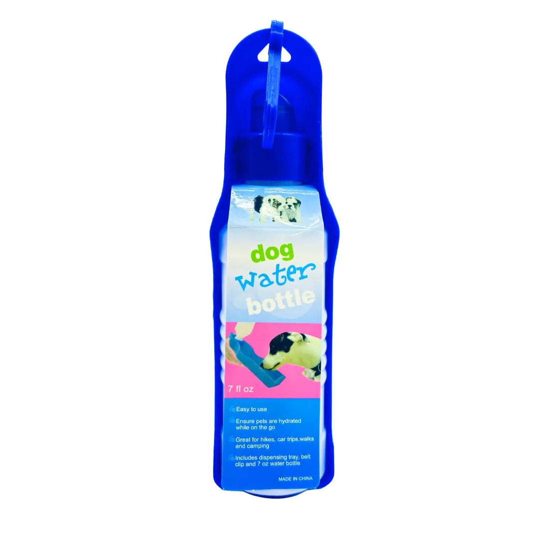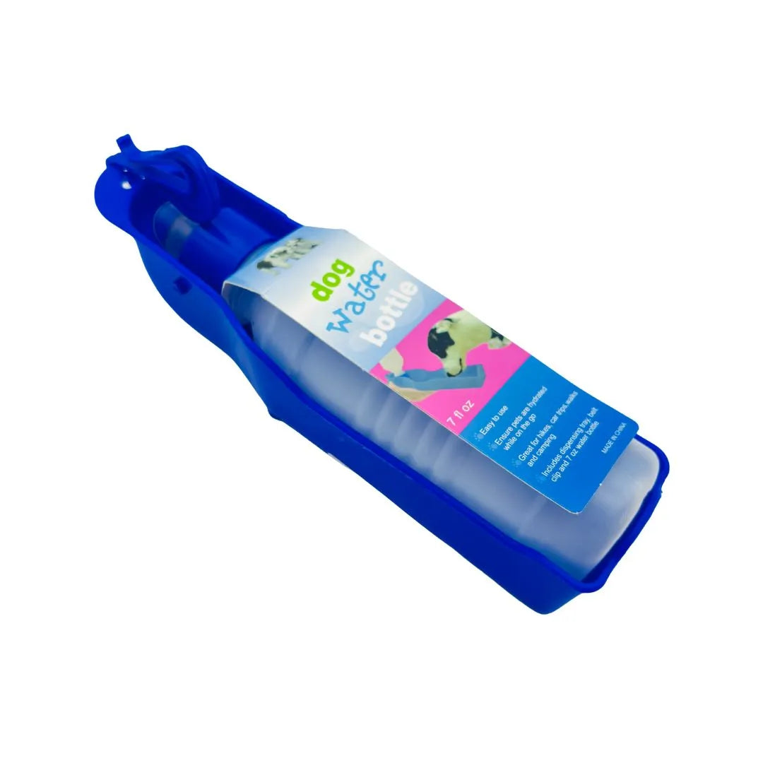Keep your canine companion perfectly hydrated wherever your adventures take you with this Portable Dog Water Bottle. This essential travel accessory features a clever two-in-one design, combining a water reservoir and a drinking trough into a single, compact unit. The bottle reservoir, made from translucent plastic, allows you to monitor the water level easily, while the attached vibrant blue plastic base functions as the trough your dog drinks from.