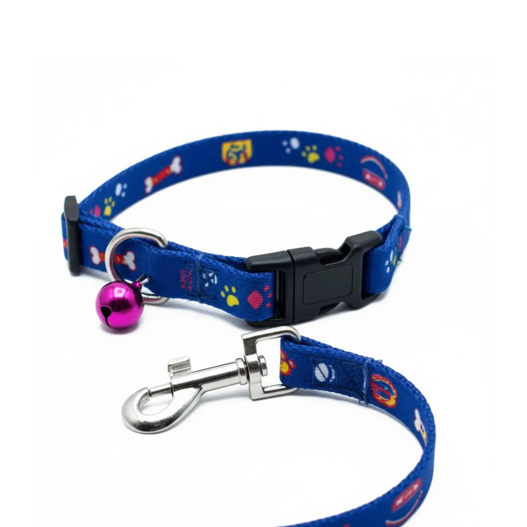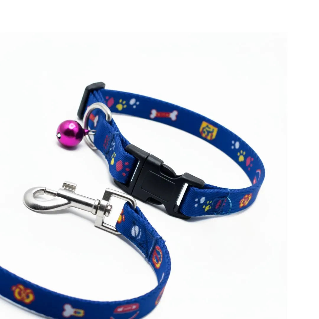 Brighten up your pet’s daily walks with this Printed Nylon Pet Collar and Leash Set, designed especially for cats, puppies, and small dog breeds. Made from durable blue nylon webbing, both the collar and leash feature adorable multi-color pet-themed prints — including paw prints, bones, and animal faces — creating a fun and stylish look.