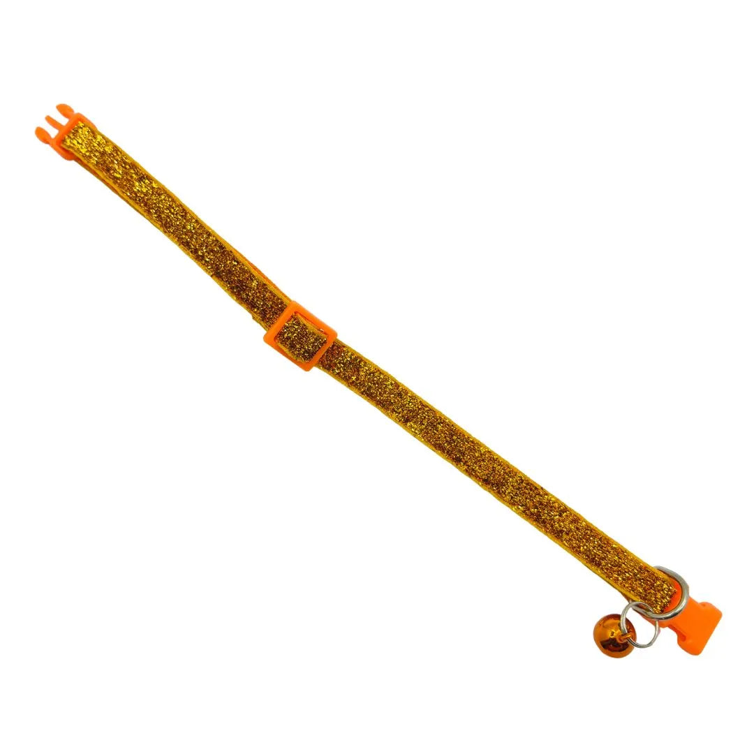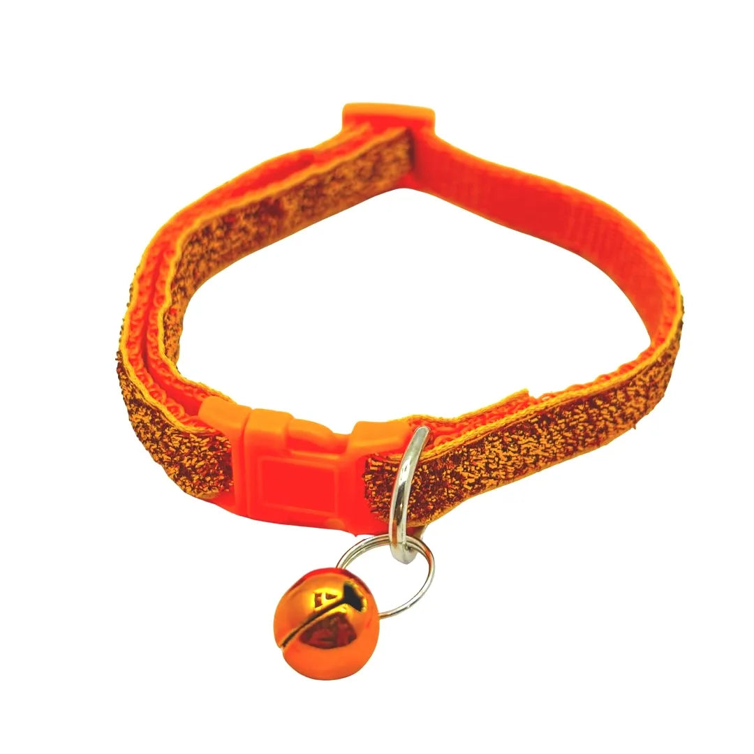 Add a sparkle to your pet's wardrobe with this stylish Shimmering Orange Collar. Designed for puppies, small dogs, and cats, this collar is made from durable webbing infused with fine shimmer, giving it a fancy, shimmering finish that catches the light. The Orange color is both cheerful and eye-catching.
