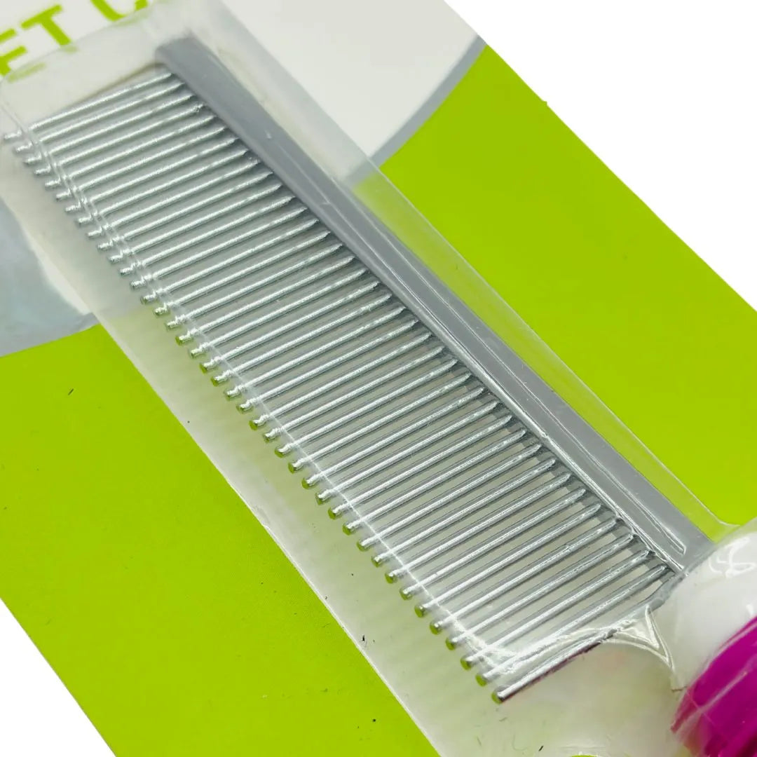 Keep your pet's coat smooth, healthy, and tangle-free with this effective Single-Sided Pet Grooming Comb. Designed for routine dematting and coat maintenance in dogs and cats, this tool features a row of sturdy stainless steel teeth that effectively penetrate the coat to remove loose hair, dirt, and minor mats without snagging.